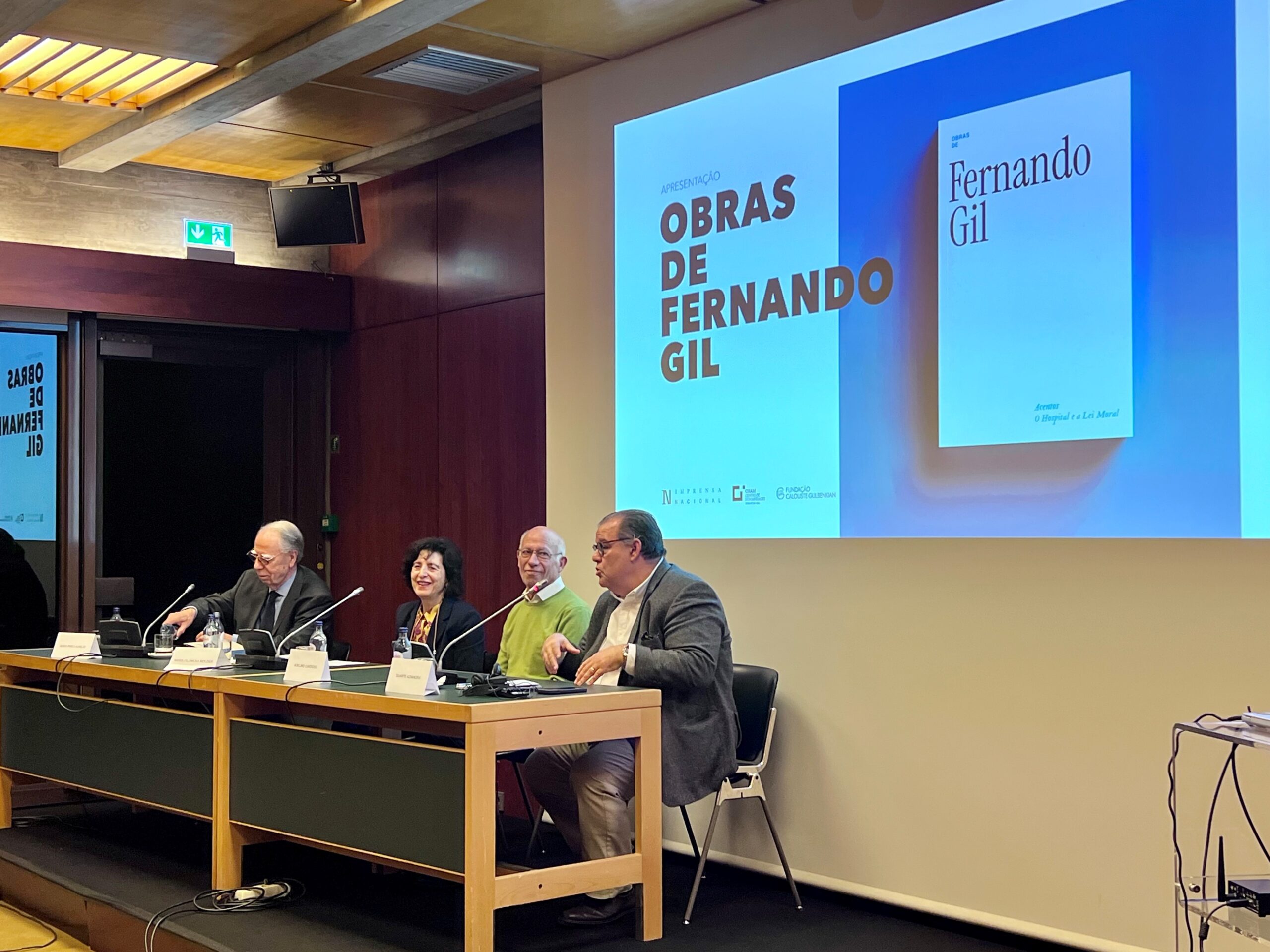 O primeiro volume da coleção «Obras de Fernando Gil», intitulado Acentos. O hospital e a lei moral, foi apresentado na Fundação Calouste Gulbenkian, no âmbito do Colóquio Internacional Fernando Gil, promovido pelo CHAM,   no dia 18 de maio. Na mesa os coordenadores da coleção, Maria Filomena Molder, Diogo Pires Aurélio, Adelino Cardoso, e Duarte Azinheira, administrador executivo da Imprensa Nacional, assinalaram a edição pela Imprensa Nacional da obra deste grande filósofo português contemporâneo.