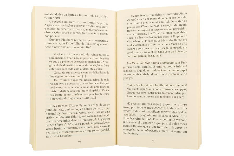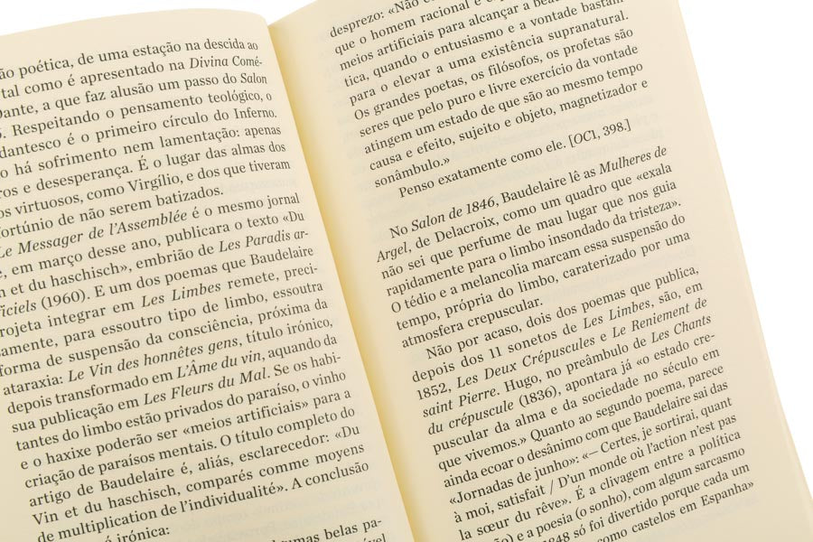 «Em apenas duas décadas, de 1845 a 1865, Baudelaire renovou o modo de fazer e entender a poesia e a crítica de arte do seu tempo, propondo uma nova ideia de modernidade contra a ideia positivista de progresso. Parte desse renovo radicou na intensificação do paradoxo como método de erosão do lirismo sentimental e na consideração da vida urbana como objeto de meditação poética. Tido por alguns como o Dante dos tempos modernos, o poeta fez de Paris a capital da melancolia, com as suas dores e fantasmagorias, os seus aspetos grotescos, e uma beleza efémera que é desejo de transcendência.» In contracapa.