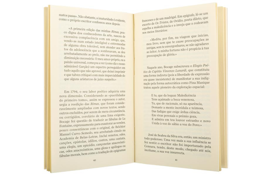 «A obra poética de Bocage é emblemática: com efeito, os sonetos líricos, eróticos e de exaltação da liberdade, as cantatas, as sátiras, as fábulas, a seminal «Pavorosa ilusão da Eternidade» e o primeiro manifesto feminista português («Cartas de Olinda e Alzira») fizeram escola e, considerando o apuro formal, a autenticidade e o universalismo que encerram, são considerados paradigmáticos. O talento literário, a postura cívica interveniente, as opções de carácter social, a pobreza vivenciada, a perseguição política que o levou à prisão, a irreverência, a ironia cáustica e o seu falecimento prematuro contribuíram para a inequívoca popularidade do escritor: artistas plásticos, dramaturgos, poetas, ensaístas, músicos, cineastas, escultores, intelectuais de diversa índole e o povo em geral alimentaram um mito, que perdura..» in Contracapa
