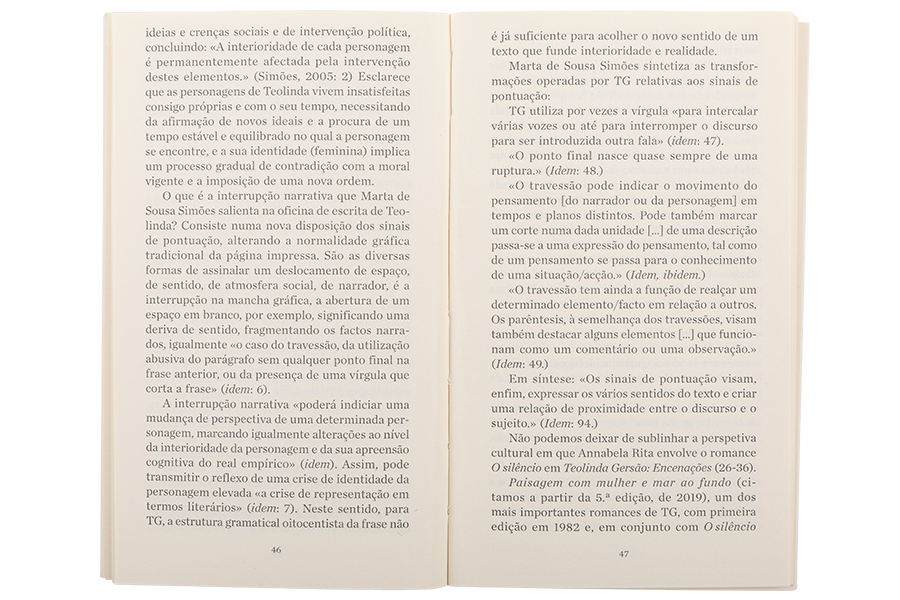 «Teolinda Gersão (1940) é, pela contínua reedição da sua obra, pelos abundantes prémios recebidos, pela transformação estilística que operou no tecido da língua, uma das melhores escritoras portuguesas contemporâneas.